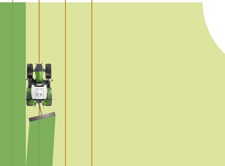 When working on slopes, trailed attachments can drift due to their own weight despite a guidance system, thus creating overlaps during the operation. Drivers must then manually intervene in the guidance system and correct the course. For example, you have to nudge waylines to keep the attachment following the along previous track correctly. With the new Fendt Implement Slope Compensation option, drivers can specify an override of the target slope. For this purpose, the driver sets a correction value per degree of slope. The tractor then automatically corrects its course depending on the current slope, so that the attachment optimally works its tracks. This increases the quality of work during tillage and seeding. Working comfort is increased as manual counter-steering is no longer required. A second receiver on the attachment is not necessary with this solution.