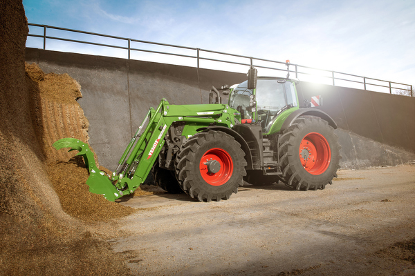 A maximum lifting capacity of 8,873 lbs (4,070 kg) and a lifting height of 16 feet (4.85 m) leave nothing to be desired in terms of loading performance. The Fendt Cargo 6.100 has its own valve block with separate front loader valves, a new multi-coupler, and working lights on the loader frame. In addition, a new universal bucket with a width of 8 feet (2.55 m) is available. For the first time, the weighing function (individual and total weight) can be used in any position, making it possible to weigh pallets, for example.